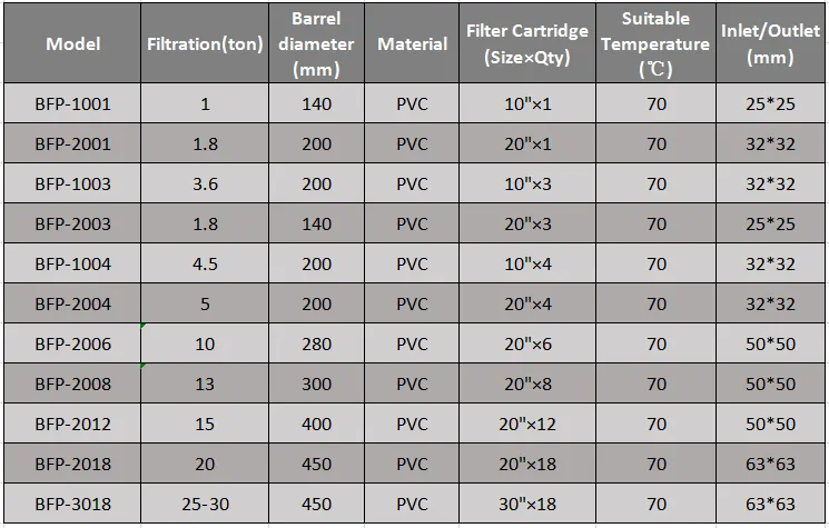 PVC Cartridge Filter Unit BF Series