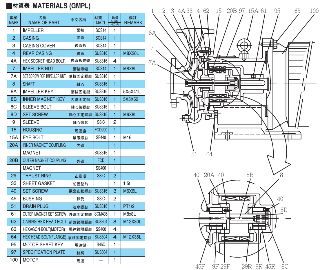 Stainless Steel Magnetic Drive Pump GMPL Series